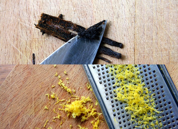 naar keus 1/4 theelepel citroenschil of de zaadjes uit 1/4 vanillepeul